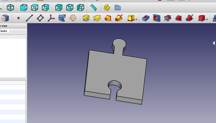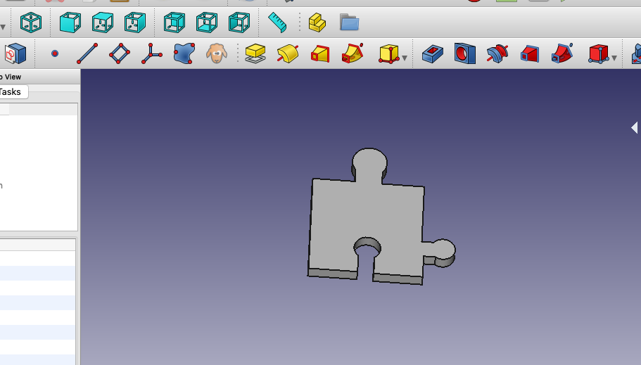 The two different locking pieces that would stay together presented a different challenge of making sure that the where the pieces would stick together were the same size and would actually hold. I made two different designs for this one, an original lock using two cylinders and then a key that would fit in the bottom and then I did a simple set of two puzzles pieces that fit together. The lock is very interpretive seeing as it doesn’t really look like a classic lock but more like a kid lock that corporate shapes. I began with a square, then padded it, and then created a new sketch using the top to create two circles and put a hole in it and then on the bottom I used an arc and the polyline tool to create the simple key shape hole. In two separate documents I used the same measurements as the key hole to create the key and just added that on to a rectangle shape and the padded it to make it dimensional. The top lock handle was a bit more difficult as I couldn’t figure out how to integrate the curve with the cylinders at the end hence the weird shape but I used the same dimension from the lock once again and then padded the cylinders on the bottom of the handle. The puzzle pieces were simple just creating a basic puzzle pice shape with the outward and inward pieces and then padding it to make it dimensional. Then the second piece which sticks into the the first piece at the bottom, was the made the same way but for using the dimensions of the hole in piece one I created the outward design to ensure they would stick together. ( The puzzle pieces are in order in the pictures, the second piece sticks to the first at the bottom)