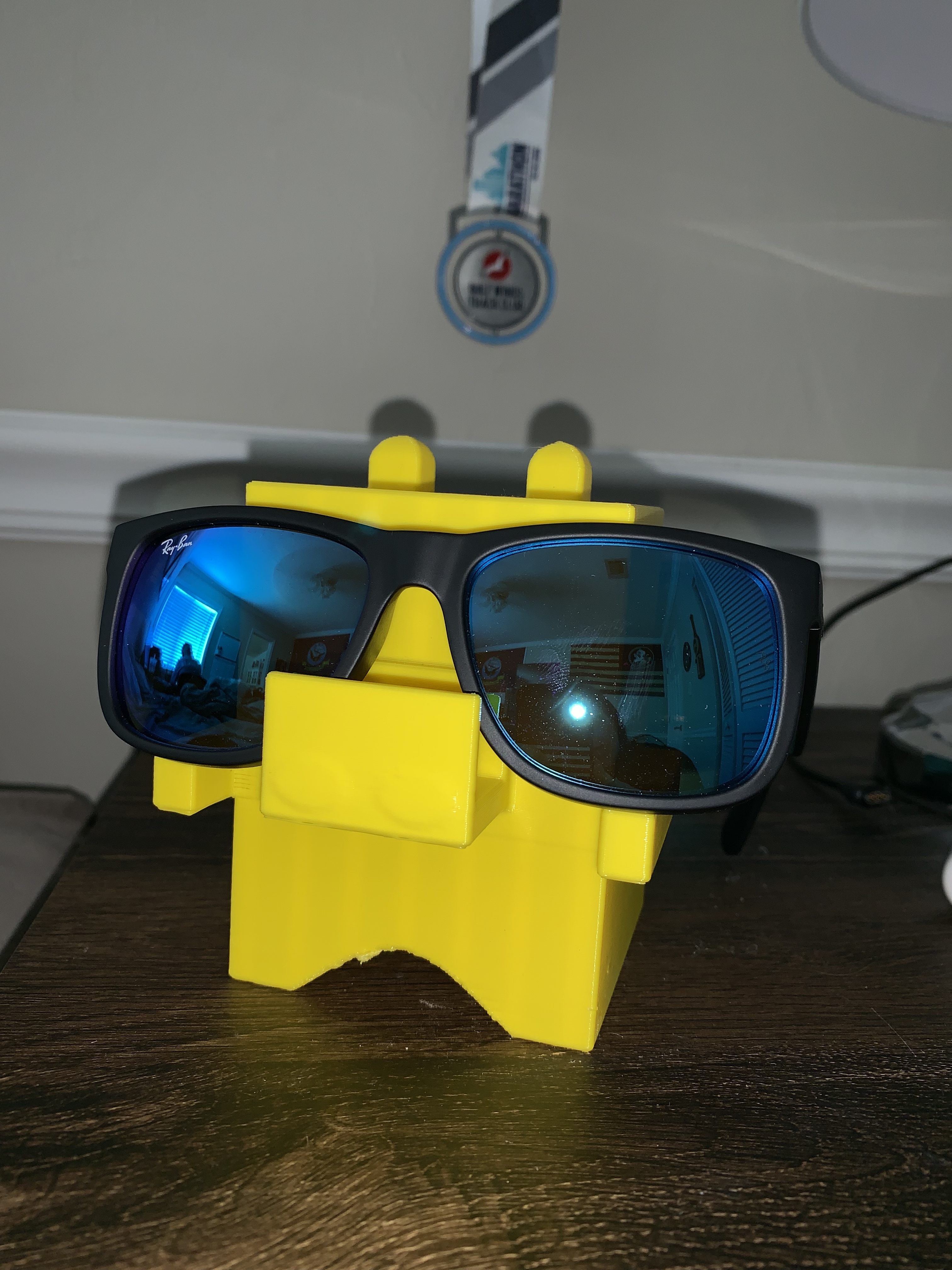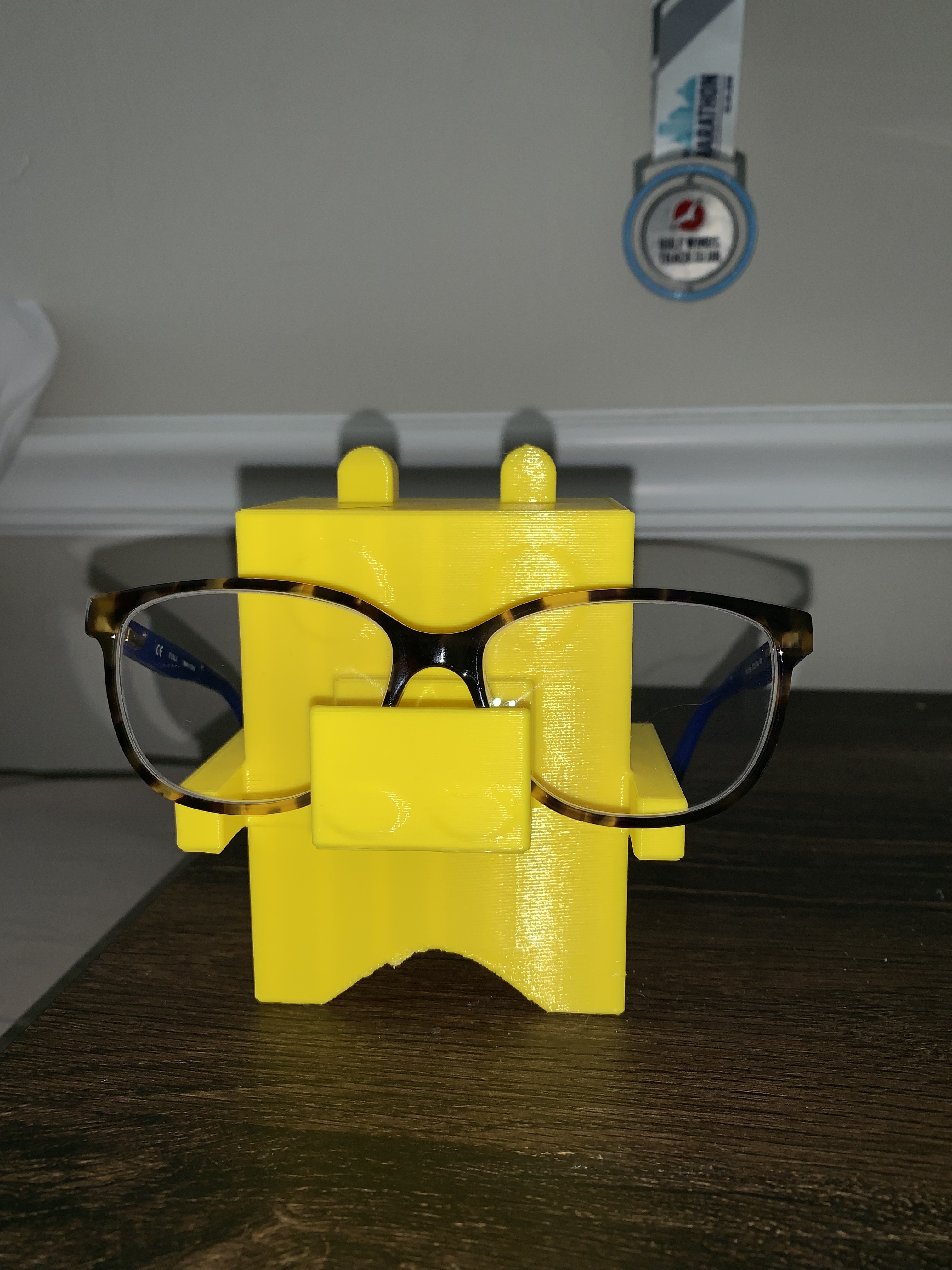I am SO proud of my 3d printed eyeglass holder, I got it right the first time and didn’t botch anything, not to mention it actually worked which I was doubtful about. My original design I think was too small so I ended up redesigning it before I actually printed and it was probably a good thing I did. The process of printing it was actually a lot easier than I thought it would and I did print it early just in case I ended up printing spaghetti, thankfully I did not.