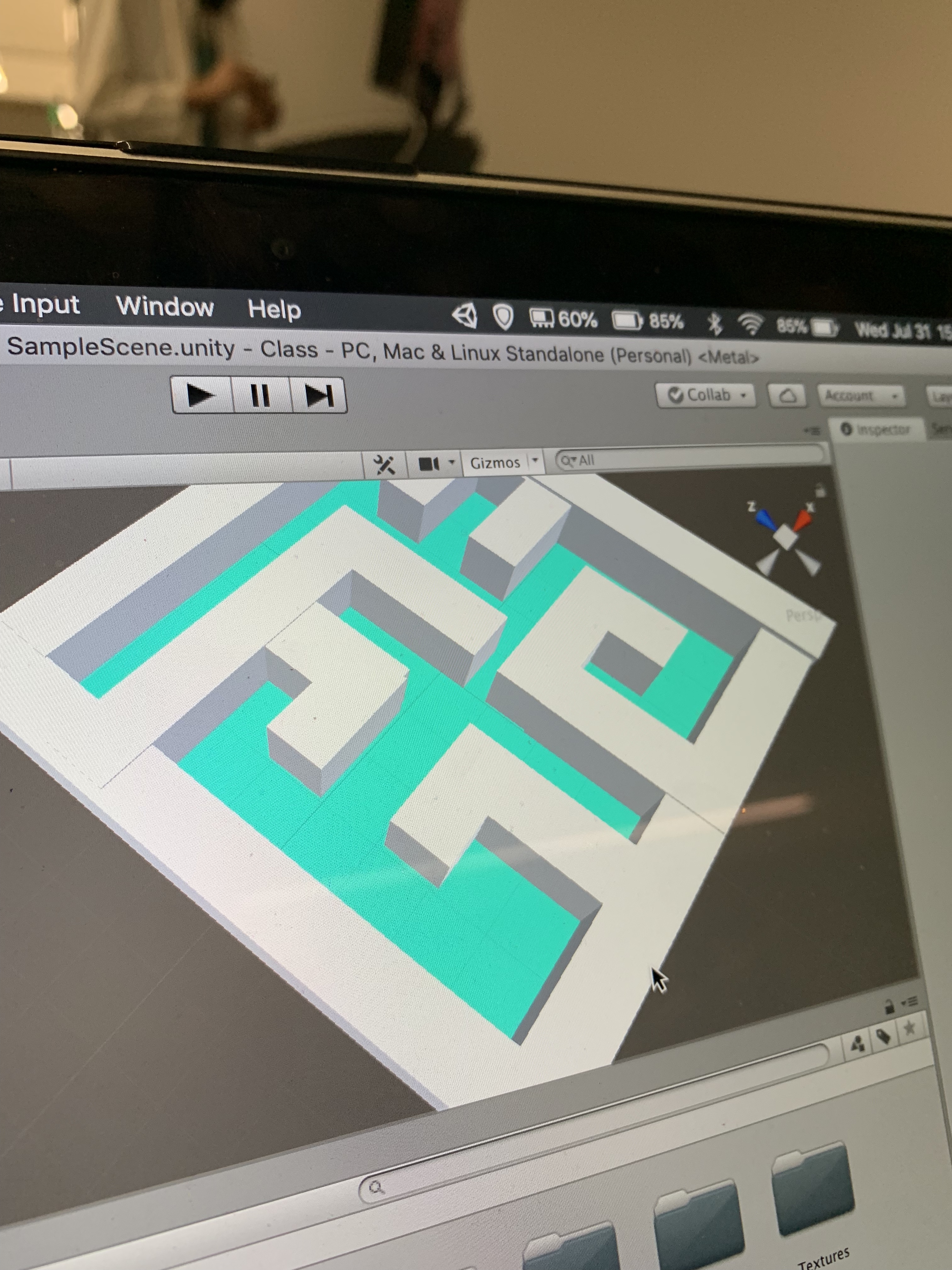 In order to test our maze game we set it up in settings to be able to transfer it to VR and then downloaded it straight to the USB to plug into the computers at the IHUB. We ran into a problem when trying to play it because the VR hand controllers did not want to work which explains why in the video we are simply just looking around at the walls and such rather than actually moving. Had we actually had maybe an Xbox controller or something of the like we may have been able to move around, unfortunately we were unable to locate a controller and couldn’t move around. Though if we test it on the UNITY program we can move around the complete maze and do what you would actually be able to in the VR headset had the controllers worked.