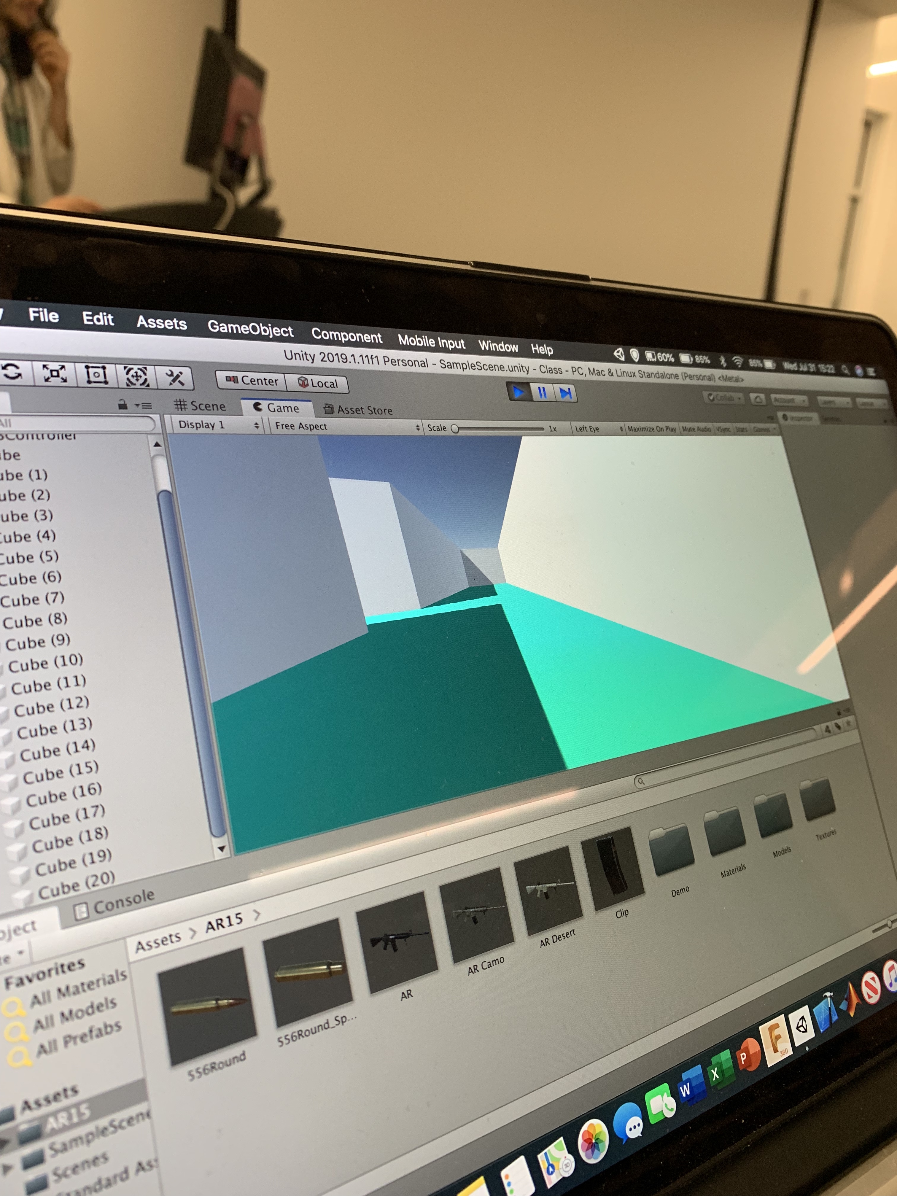 For our VR game we decided to do something simple because we didn’t have much time to create it before it is due. We designed a maze by putting it on a graph paper type grid and then just plugging in the x and y coordinates of where the walls were supposed to go which made the process of building it go 10x quicker than just dragging and dropping individual pieces. I think one of the cooler aspects of the game is that our “player” is a gun rather than it just being you or a person. The starting point of the maze is long corridor on the left and there is no end point just to kind of confuse someone who is not familiar with the game. The maze may seem rather simple however when you actually put the VR headset on the walls are humongous and therefor kind of disorienting, this is what makes it more difficult.